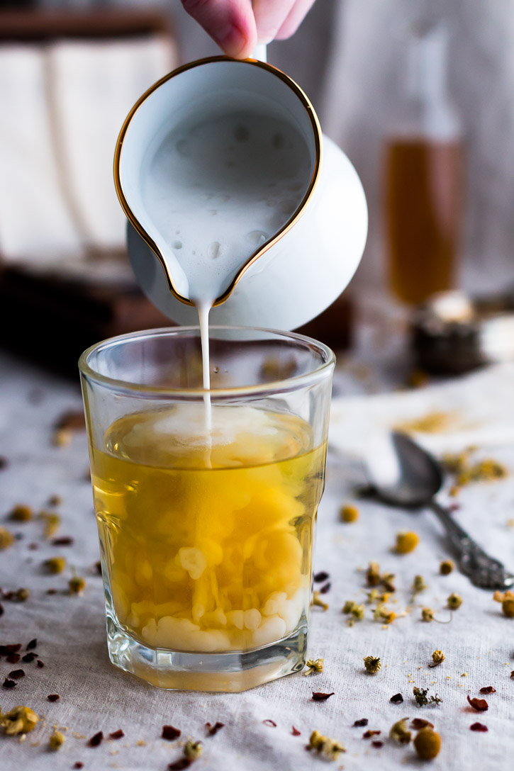Jump to RecipeI created this Rosehip Chamomile Tea Latte during the weeks of nonstop rain. Tea is very popular during dreary weather and I wanted to sip on something that would match the mood.