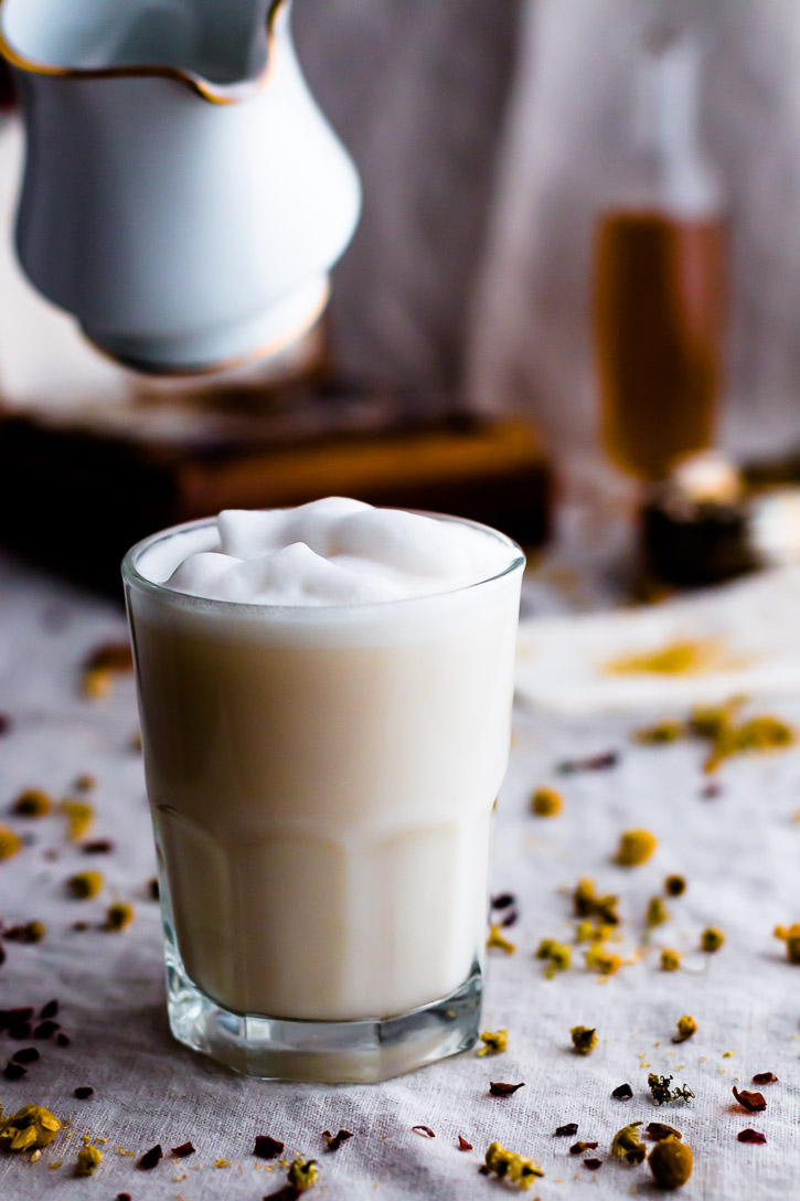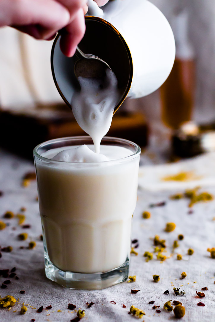 - Add 1/4 teaspoon rose water and then froth with a milk frother. Pour into cup and serve.