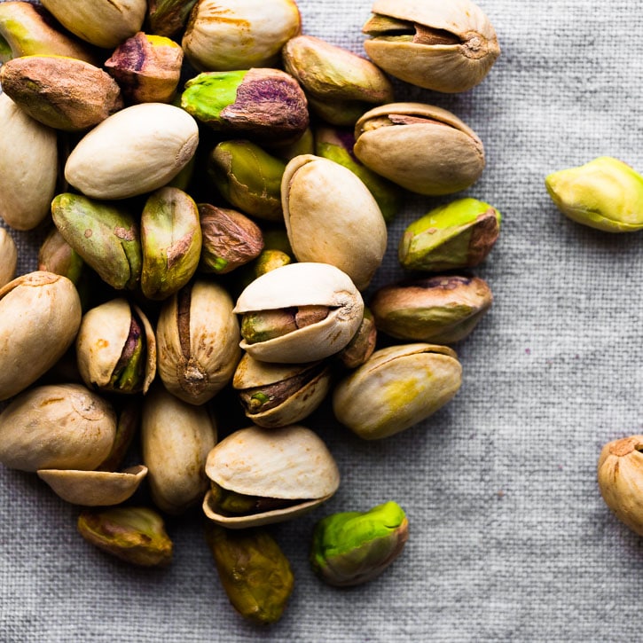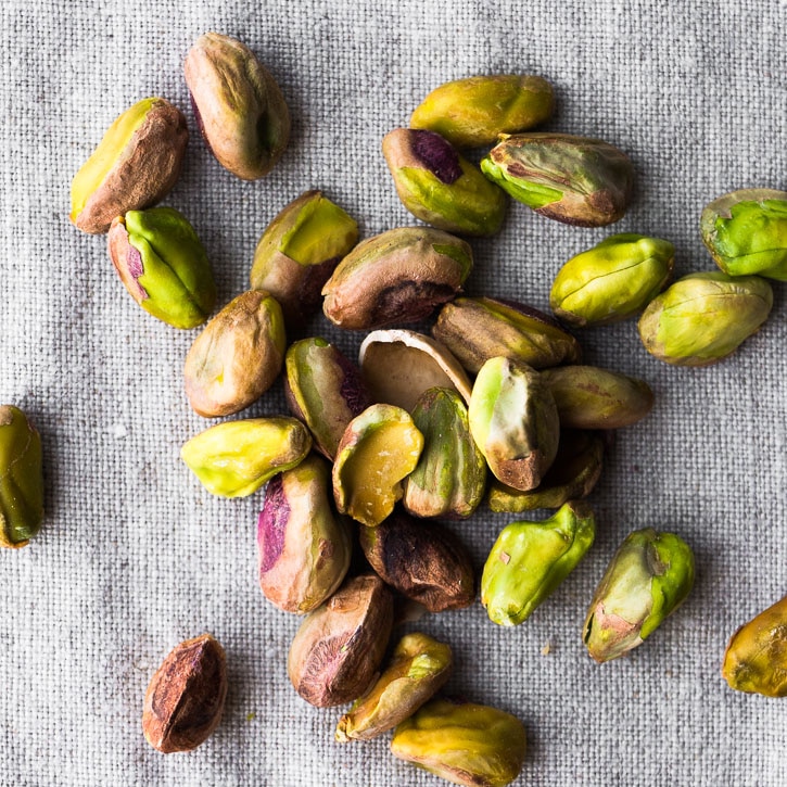 - 1/2 cup shelled unsalted pistachios measured with their shells on and then unshelled